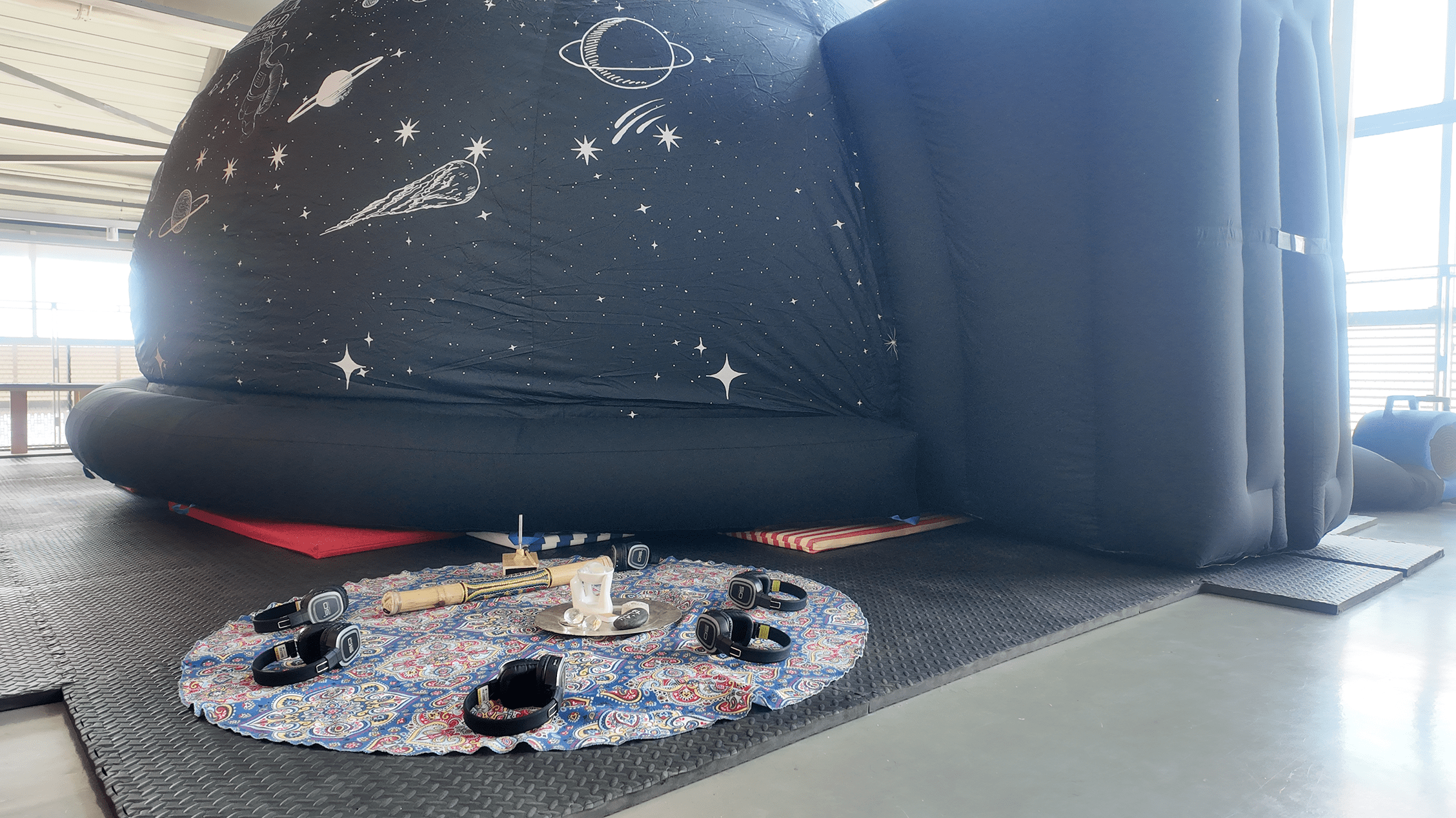 מסע תודעה אישי בתוך מרחב קבוצתי של עד 10 משתתפים, המרגיש כמו כניסה לתוך קליידוסקופ דיגיטלי מהפנט. החוויה מתקיימת בתוך כיפת VR 360° בשכיבה על מזרן וללא צורך במשקפיים, ומשלבת מדיטציה מונחית וסאונד עוטף באוזניות אישיות. שעה של ניתוק מהחוץ וחיבור פנימה.
